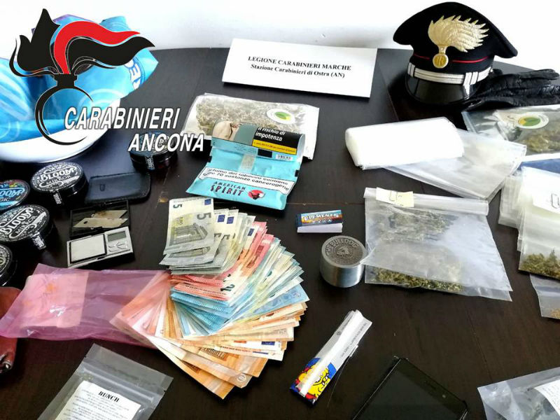 Inoltre lo stesso è stato trovato in possesso della somma in contante di euro 1.735, per i militari provento dell’attività illecita. Per la sola detenzione dei 13 grammi di marijuana a base di thc il 30enne è stato denunciato alla Procura della Repubblica di Ancona per il reato di detenzione illegale di sostanza stupefacente essendo possibile il fine di spaccio.