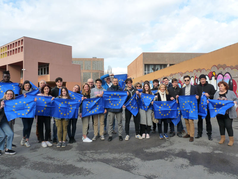 Nella piazzetta del campus scolastico ci sono rappresentanti di tutti gli istituti ad attendere il sindaco. Ci sono anche l’assessore Giuliana Ceccarelli e la dirigente dell’Ufficio scolastico provinciale Marcella Tinazzi. Sono lì per le bandiere europee, che Matteo Ricci distribuirà di lì a poco agli studenti.