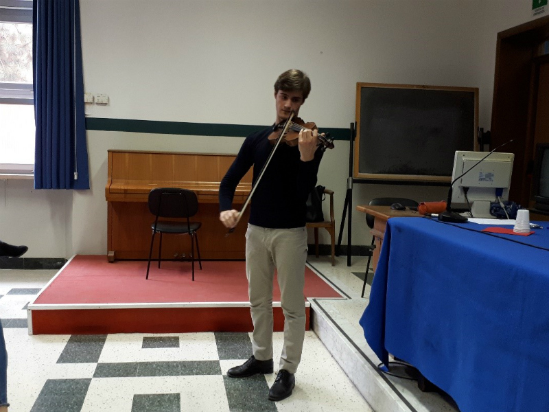 Al Liceo Classico Perticari il giovane violinista e attore Leonardo Mazzarotto