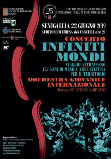 Nel venticinquesimo della Fondazione Cassa di Risparmio di Jesi sabato 22 giugno alle 21,00 all’Auditorium ex Chiesa dei Cancelli a Senigallia in via Arsilli, 23, si esibirà l’Orchestra Giovanile Internazionale dell’Associazione “Premio Vallesina onlus”.
