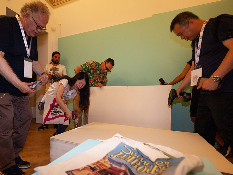 Apertura opere per la mostra per il ventennale del Summer Jamboree insieme a delegati Unesco