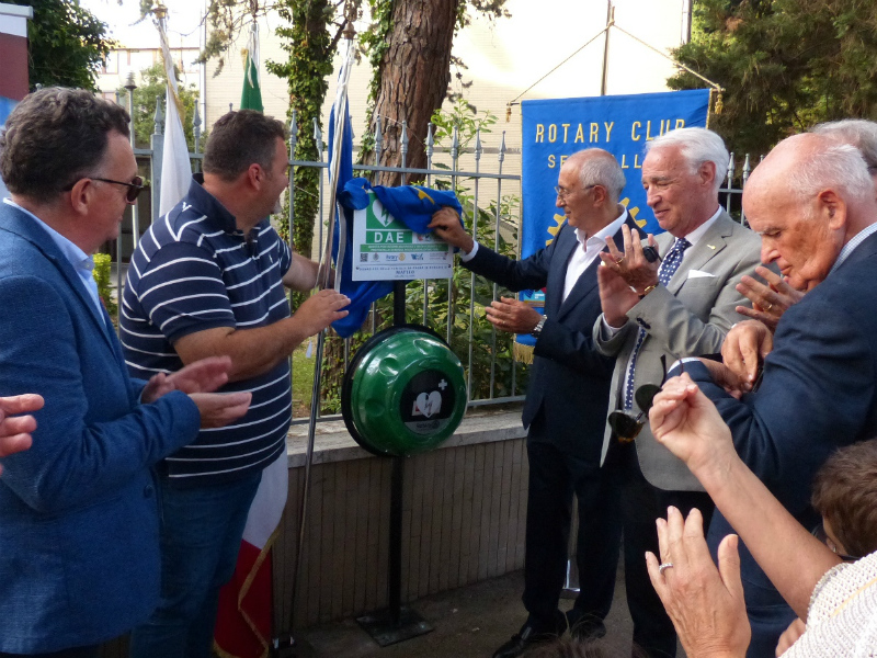 Senigallia è sempre più città cardio-protetta grazie all’iniziativa del locale Rotary Club che, dopo aver preso il via nel 2018 con la dislocazione dei primi cinque defibrillatori semiautomatici nei punti nevralgici della città, è proseguita in maniera ancora più incisiva quest’anno con la consegna alla città di altri tredici strumenti salvavita di pronto intervento; delle tredici postazioni, due sono state donate dalla farmacia Avitabile e dalla farmacia Filippini ed uno, molto significativo, dalla famiglia Mario Brignone in ricordo del figlio Matteo, improvvisamente scomparso nel 2009.