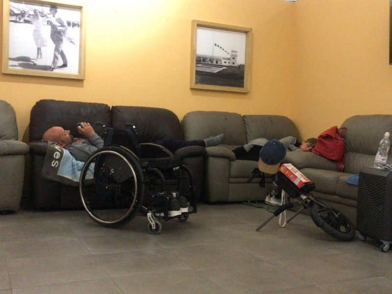 Michael Baioni Bechtold costretto a passare la notte sui divani dell'aeroporto