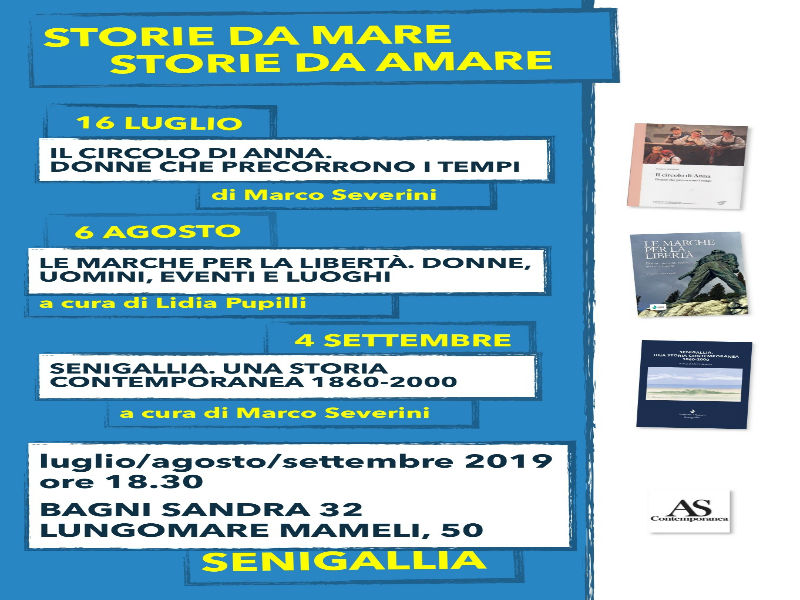 L’Associazione di Storia Contemporanea promuove durante l’estate presso i Bagni Sandra 32 (Lungomare Mameli, 50 – Senigallia) la nuova rassegna “Storie da mare, Storie da amare” con cui intende proporre tre recenti successi della recente produzione storica.