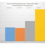 La qualifica per la mansione svolta si attesta abbondantemente al di sotto della metà del campione, rispettivamente al 28.6% per gli uomini e al 25.7% per le donne. Incrociando i dati tra la mansione svolta e la qualifica per quella specifica mansione si noti che solo per chi lavora negli stabilimenti balneari c’è una prevalenza di qualifica, con il 57,1% (presumibilmente per quanto riguarda i bagnini); a seguire abbiamo la le qualifiche per l’accoglienza e l’hotel al 41,7%. Per quanto riguardo la ristorazione abbiamo il 17% e per negozi e supermercati non sono richieste qualifiche, quindi i l risultato è dello 0%.