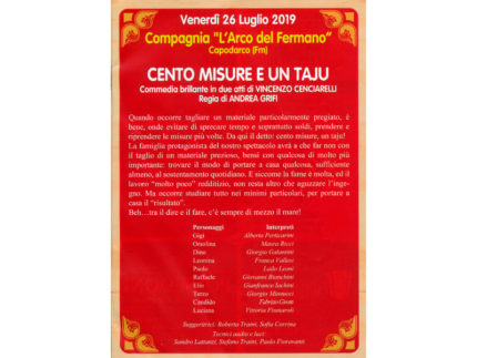 Venerdì 26 luglio 2019 alle ore 21:15 la Compagnia “L’Arco del Fermano” presenta la commedia brillante: