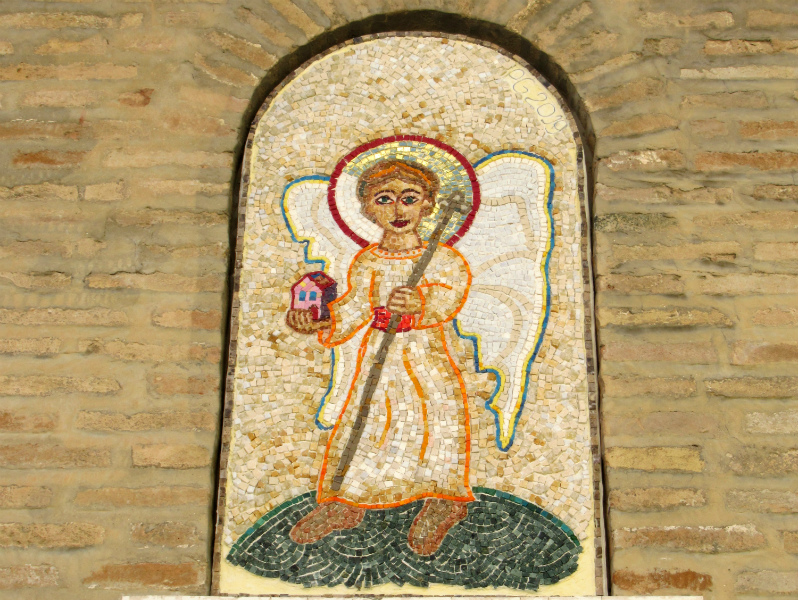 Ha qui realizzato un immagine dell’ arcangelo Michele, rappresentato come protettore della casa.