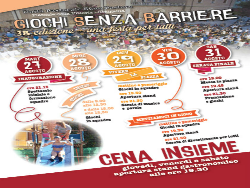 Ecco il programma dell’edizione n. 38 dei Giochi Senza Barriere, che si svolgerà nei campi da gioco della parrocchia in via Gramsci e in piazza della Vittoria.