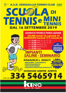 Inizia la Scuola di Tennis 2019/2020 della A. S. D. Senigallia Tennis Club presso i campi delle Saline e del Seminario.