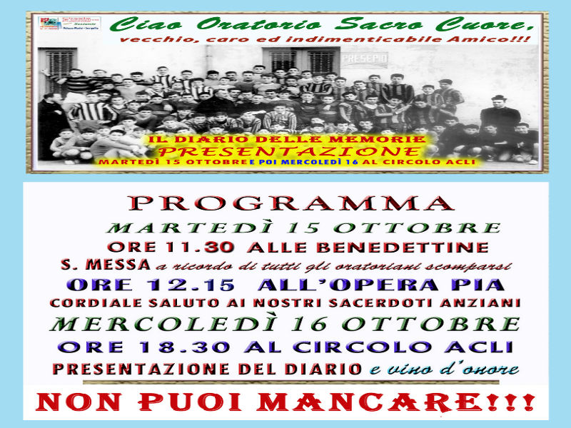La presente per informare che abbiamo recentemente editato il fascicolo “Ciao oratorio Sacro Cuore”.