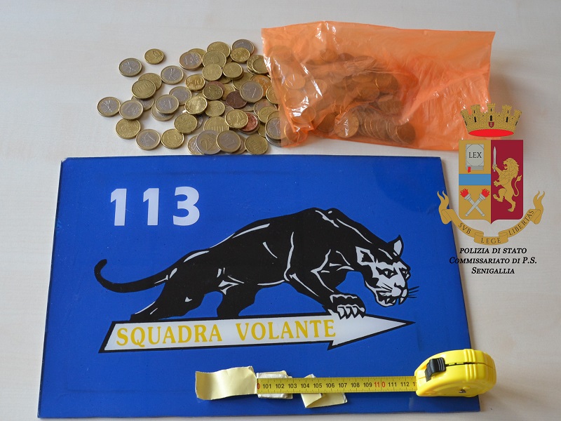 In una via del centro storico di Senigallia, infine, i poliziotti si sono imbattuti in due uomini che alla loro vista hanno repentinamente svoltato in una strada laterale. Raggiunti nel giro di pochi secondi, essi hanno dichiarato di aver fretta a raggiungere la stazione ferroviaria in quanto uno di loro era in ritardo per prendere un treno diretto in Campania. La loro spiegazione non ha però convinto gli agenti, che hanno così provveduto a identificarli e a perquisirli: P.P., 45enne residente nel Pesarese, e il 50enne campano P.G., entrambi pregiudicati, sono così stati trovati in possesso di circa 80 euro in monete, di un coltello e di un metro estensibile fornito di un adesivo, strumento solitamente utilizzato da chi effettua furti ai danni delle cassette delle offerte delle chiese. Ambedue gli uomini sono stati interessati da un provvedimento di allontanamento da Senigallia valevole per tre anni; P.G. è stato inoltre denunciato per porto abusivo d’armi.
