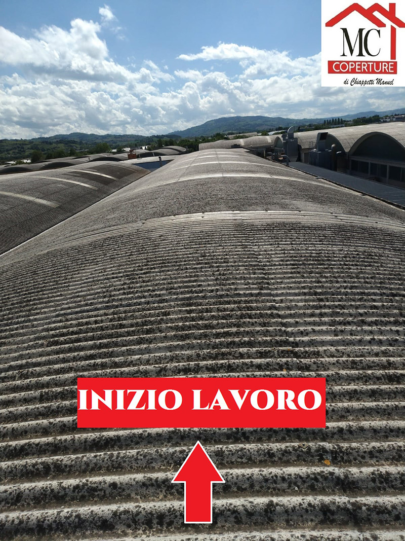 Bonifica amianto e rifacimento di nuove coperture operato da MC Coperture - inizio lavoro