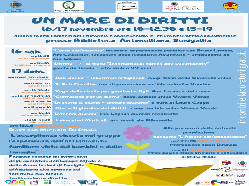 Si terrà sabato 16 e domenica 17 novembre l’iniziativa “Un mare di diritti”organizzato dal Comune di Senigallia e dall’Associazione “Un tetto”.