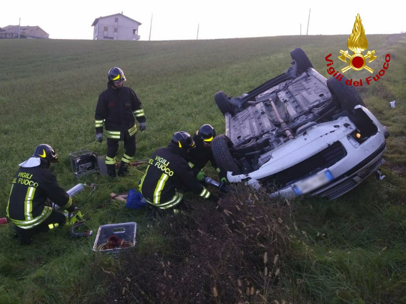 Auto esce di strada e si ribalta in un campo delle campagne di Senigallia