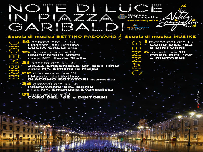 Si chiama “Note di luce in piazza Garibaldi” ed è la bella rassegna musicale organizzata dal Comune di Senigallia, in collaborazione con le scuole di musica Bettino Padovano e Musikè, che prenderà il via il prossimo fine settimana nella scenografica piazza ritrovata.
