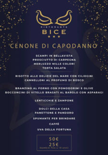 Ottimi menù d’asporto per la Vigilia di Natale ed una proposta da non perdere per il cenone di San Silvestro ed il pranzo di Capodanno. Questo e tanto altro offre il Ristorante Bice.