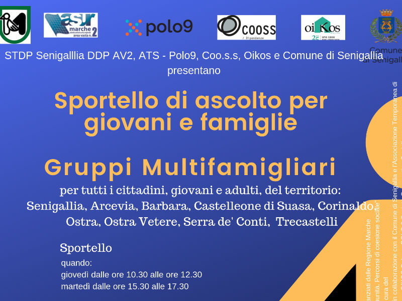 Lo sportello psicologico è gratuito ed è destinato ai genitori, ai ragazzi, ai singoli cittadini del territorio. Ad accoglierli ci sarà la professionalità di uno psicologo del servizio di Dipendenze Patologiche dell’Asur.