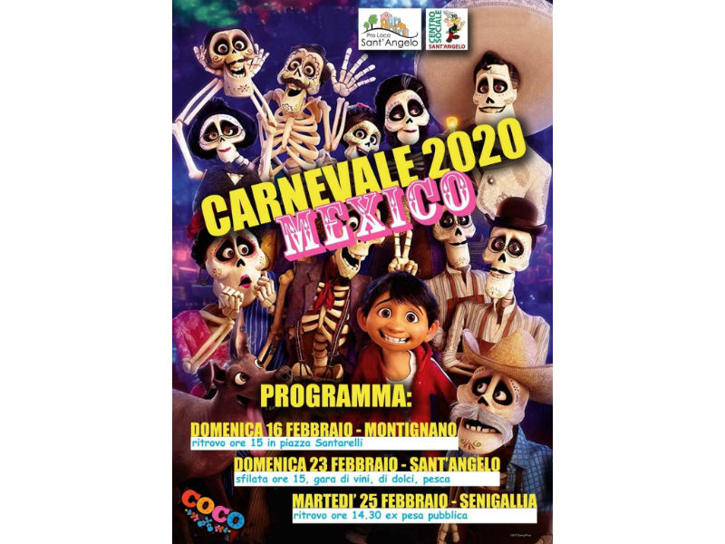 Un Carnevale immerso nelle atmosfere messicane quello di domenica prossima, 23 febbraio, alle ore 15, a Sant’Angelo di Senigallia. Quest’anno la Pro Loco Sant’Angelo e il Centro Sociale di Sant’Angelo si sono lasciati ispirare dal film Coco e dalle musiche allegre e coinvolgenti del Messico.