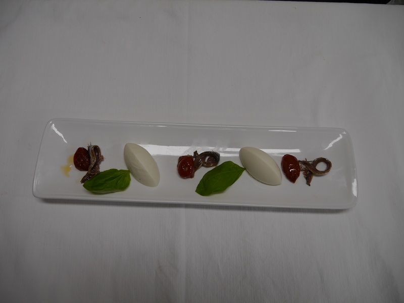 “Alice di Menaica con pomodorini semisecchi e mousse di burrata”.