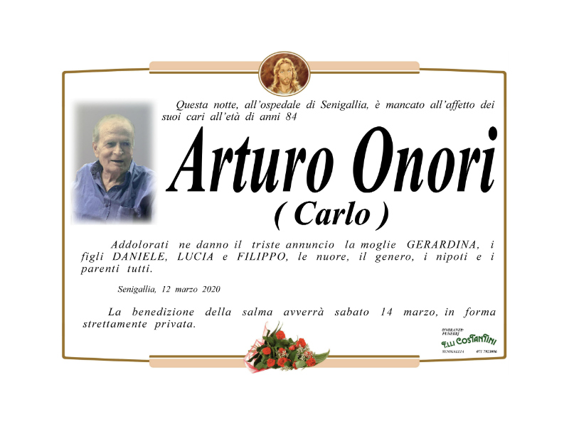 Questa notte, all’ospedale di Senigallia, è mancato all’affetto dei suoi cari all’età di 84 anni Arturo Onori (Carlo).