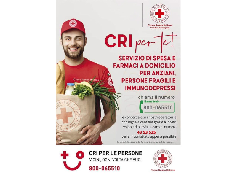 Il servizio offerto dal comitato senigalliese della Croce Rossa Italiana, invece, prende il nome di “Cri per te”e riguarda la consegna a domicilio della spesa e di farmaci ad anziani, persone fragili e immunodepressi. Per richiedere la prestazione è sufficiente chiamare il numero verde 800 06 55 10 e concordare con gli operatori la consegna a domicilio, che sarà svolta da uno dei tanti volontari della Croce Rossa Italiana. La richiesta può essere anche inoltrata inviando un sms al numero 43 53 535: un operatore provvederà a ricontattare l’utente quanto prima. Inoltre, in collaborazione con Sep (Servizio Psicosociale) e con il sostegno di Fondazione Cariverona, è stato recentemente attivato il servizio “Emergenza Coronavirus”, già attivo da tempo su tutto il territorio nazionale. Tale servizio è attivo dal lunedì al venerdì, dalle ore 9 alle ore 12 e dalle ore 15 alle ore 19: chiamando il numero 3316425836 i cittadini potranno chiedere un supporto psicologico; chiamando invece il numero 3472321694 sarà possibile chiedere supporto sanitario.
