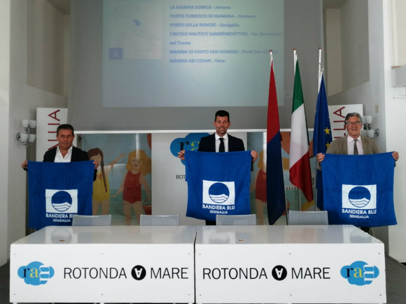 A ritirare simbolicamente le due Bandiere Blu sono stati il sindaco Maurizio Mangialardi, il vicesindaco Maurizio Memè e il responsabile regionale di Eco School Marche, Camillo Nardini, che si sono collegati in videoconferenza dalla Rotonda a mare.