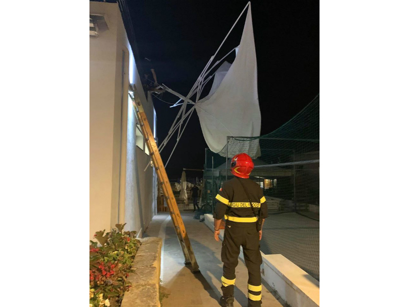 Qualche danno anche in qualche locale: divelti ombrelloni e strutture coperte. Diverse le segnalazioni ai Vigili del Fuoco anche se non si segnalano feriti.