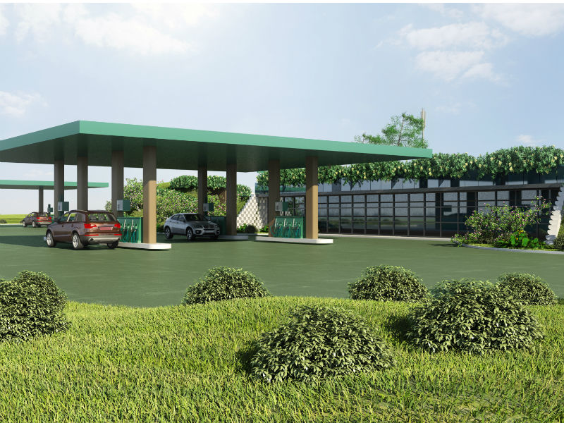 Inoltre, i lavori realizzati consentiranno anche di allargare l’attività economica alla fornitura di benzine, gasolio e novo metano Gnl, oggi non presenti. Da notare, infine, che il nuovo edificio sarà completamente ricoperto da terreno vegetale, con prato ed essenze locali per tre lati che lasceranno il solo fronte principale completamente vetrato.