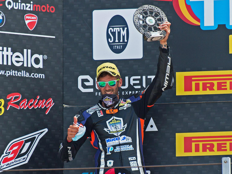 E lo stesso dice : “Ho lottato con tutte le forze per ottenere un risultato importante. Il Team ed io abbiamo dato il massimo, ed il podio lo conferma. Certo possiamo ancora migliorare, ad esempio il motore Yamaha è un po’ meno veloce rispetto alle altre moto presenti in campionato, ma la ciclistica è ottima e ci permette di andare molto forte nel guidato. Non abbiamo ancora trovato la giusta combinazione con le gomme Dunlop, ma anche qui stiamo lavorando e ringrazio per il lavoro che stanno svolgendo.”