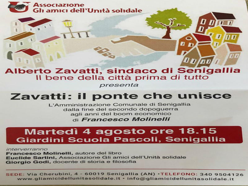 Il 4 agosto in occasione dei festeggiamenti per la ricorrenza della liberazione di Senigallia, verrà presentato il libro che ricostruisce la storia politico-amministrativa cittadina durante gli anni da Sindaco di Alberto Zavatti.