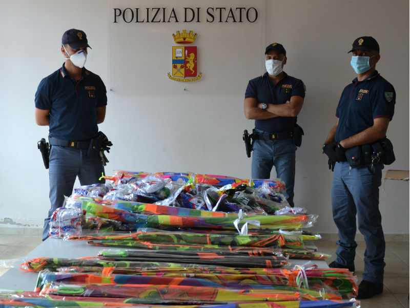 Seppur quest’anno si noti un numero ridotto, gli agenti del Commissariato hanno svolto una serie di attività di controllo, specie nelle zone del lungomare ed in aree notoriamente frequentate dagli stranieri, per verificare la presenza di soggetti dediti al commercio abusivo.