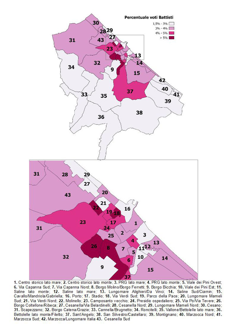 Distribuzione geografica voti per Paolo Battisti
