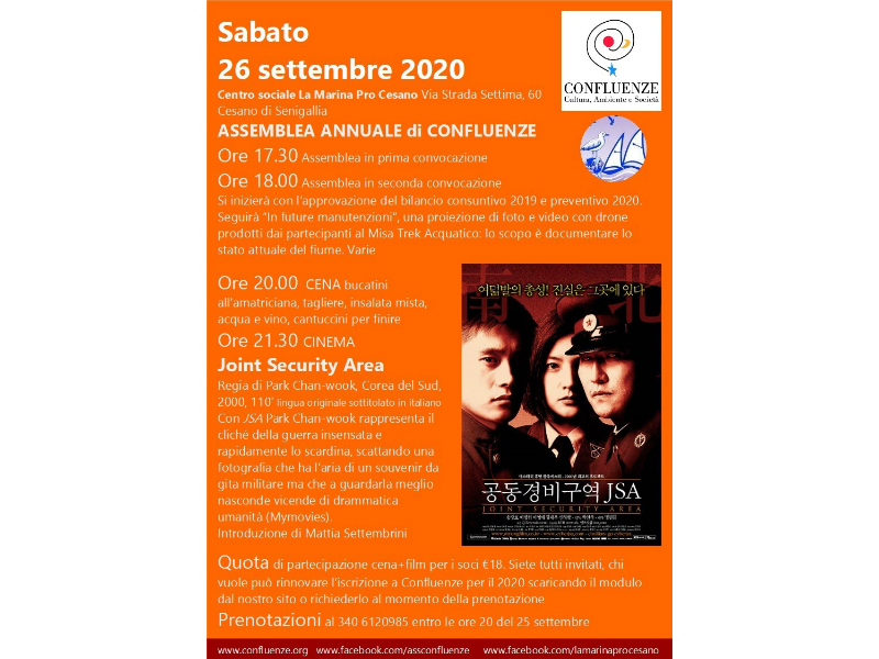 Sabato 26 Settembre 2020, al Centro Civico La Marina di Cesano si terrà l’ASSEMBLEA ANNUALE di CONFLUENZE. Questo il programma della giornata: alle ore 17.30 Assemblea in Prima convocazione, alle ore 18.00 Seconda convocazione.