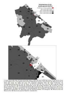 La sezione n. 10, zona Viale dei Pini est, è l’unica di colore nero. Con il 76,4% è la sezione con la percentuale di partecipazione al voto in assoluto più alta e l’unica che supera di 10 punti il valore medio.