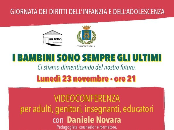 L’altro incontro inserito nel programma è una videoconferenza rivolta ad adulti, genitori, insegnanti ed educatori organizzata per lunedì 23 novembre alle ore 21,00 dall’Associazione Un tetto in collaborazione con il Comune che vedrà protagonista Daniele Novara, esperto di riferimento italiano sui temi della pedagogia e dell’educazione. La videoconferenza, dal titolo emblematico I bambini sono sempre gli ultimi, evidenzierà l’assoluta necessità di rimetterci tutti quanti in ascolto dei più piccoli ricollocandoli al centro delle preoccupazioni istituzionali dal momento che proprio loro, più di ogni altra cosa, rappresentano il nostro futuro.