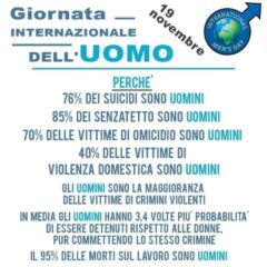 Il fatto di vedere che esista questa giornata dedicata all’uomo mi ha fatto piacere perché ha avuto il coraggio di sottolineare una ricorrenza specificamente dedicata ad un fenomeno doloroso, reale e sociale.