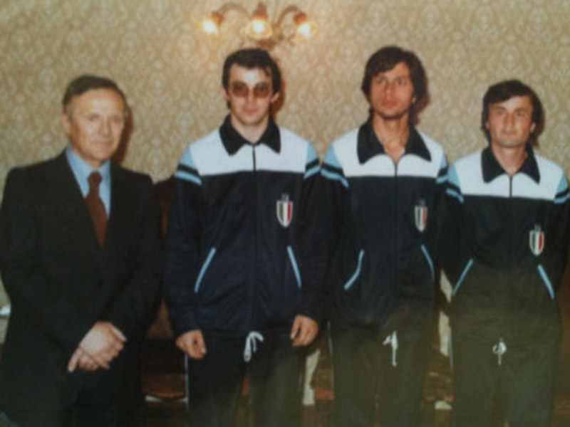 Giuseppe Orciari (primo a sinistra) con la squadra Tennistavolo Senigallia