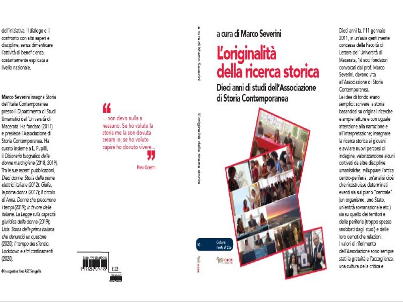Esce e viene presentato il 26 febbraio, alle 17.30, da remoto, nell’ambito della seconda edizione della rassegna “Notizie da nessun luogo” curata dal prof. Roberto Cresti e promossa dall’Università di Macerata, il libro “L’originalità della ricerca storica, Dieci anni di studi dell’Associazione di Storia Contemporanea”, a cura di Marco Severini (Ed. Aras, 2021, pp. 218).