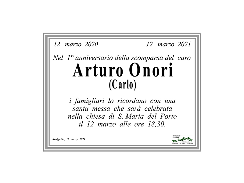 12 marzo 2020 – 12 marzo 2021. Nel 1° anniversario della scomparsa del caro Arturo Onori (Carlo)