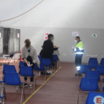 Dopo l’inoculazione del vaccino, i cittadini sono invitati all’attesa post-vaccinale di circa un quarto d’ora in un’altra tensostruttura esterna.
