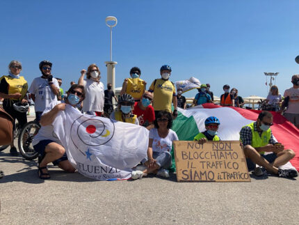Un serpentone di almeno 200 persone è transitato lungo la pista ciclabile del lungomare Marconi, e, percorrendo Via Perilli, ha raggiunto Piazza Roma, Piazza Garibaldi, Punte Zavatti per poi dirigersi verso il fiume ed arrivare alla Cantina Mezzanotte oltre Bettolelle.