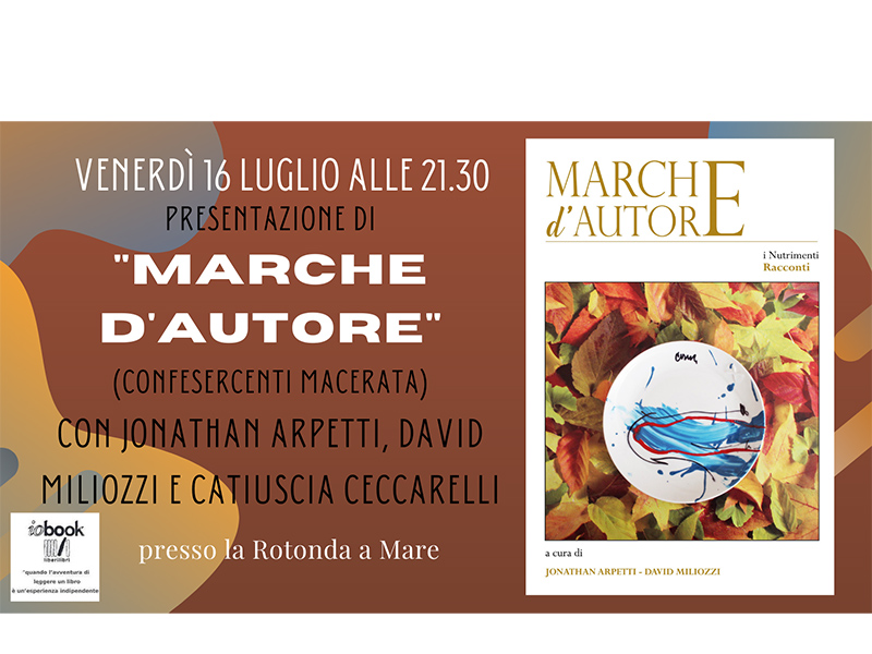 Cambio di location per “Le Marche tra le Righe” della Libreria Iobook di Senigallia, la rassegna di incontri e appuntamenti dedicati agli autori e alla letteratura marchigiana: venerdì 16 luglio, infatti, vi aspettiamo alla Rotonda a Mare alle 21.30 per presentare il terzo volume di “Marche d’Autore” (edito da Confesercenti Macerata); saranno presenti i curatori Jonathan Arpetti e David Miliozzi e i numerosi autori, in dialogo con la giornalista Catiuscia Ceccarelli.