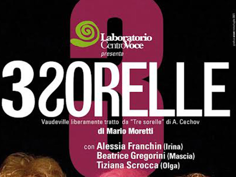 Il “Laboratorio Centro Voce” presenta “Tre sorelle tre”, Vaudeville di Mario Moretti liberamente tratto da “Tre sorelle” di Anton Cechov, con Beatrice Gregorini , Tiziana Scrocca e Alessia Franchin, per la regia di Claudio Boccaccini e le musiche di Antonio Di Pofi.