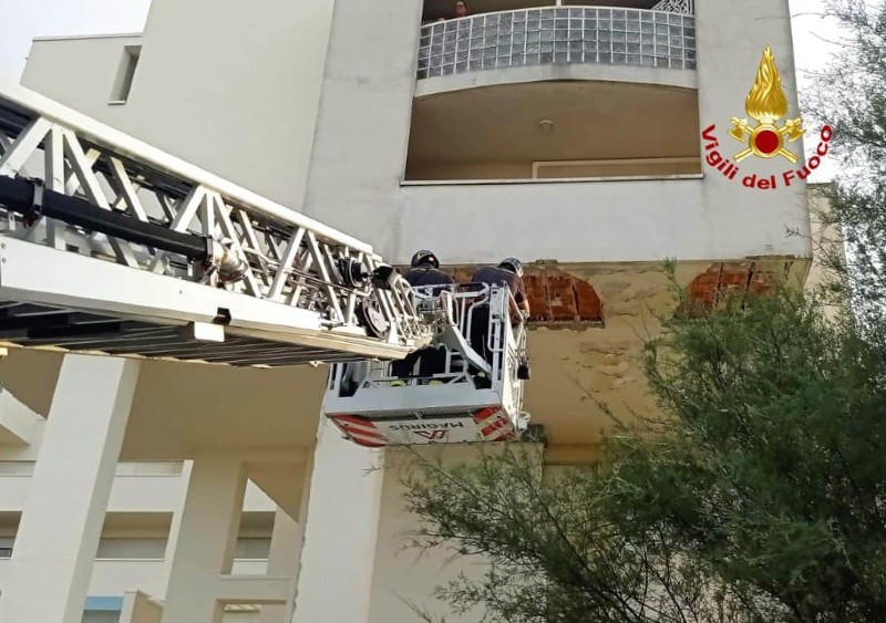 I Vigili del fuoco sono intervenuti poco prima delle ore 16.00 di martedì 24 agosto a Senigallia, sul lungomare Alighieri, per il distacco di una porzione di cemento non strutturale da un balcone.