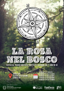 Da venerdì 27 agosto partiranno le attività con la prima caccia al tesoro dedicata ai bambini dai 7 anni, “La rosa nel bosco”, un appuntamento gratuito che si svolgerà a Bosco Mio, un luogo speciale realizzato dall’associazione Sena Nova. La caccia al tesoro è gratuita e sarà riproposta ogni venerdì fino al 24 settembre.