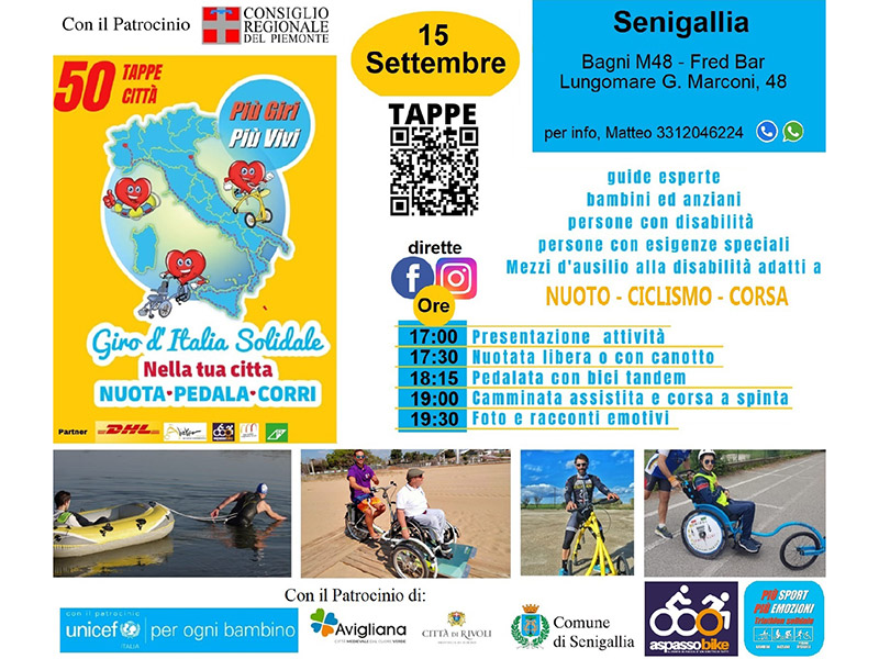 Il 15 settembre arriva a Senigallia la 49° tappa del Giro d’Italia Solidale “Più Giri Più Vivi”