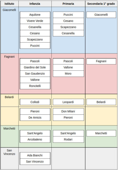La seguente tabella riporta gli istituti e le relative scuole oggetto dell’indagine.