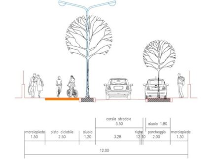 I lavori prevedono la realizzazione di due marciapiedi laterali, una pista ciclabile a doppio senso di circolazione, la doppia alberatura della strada, il mantenimento del senso unico attuale e parcheggi su un lato della strada.