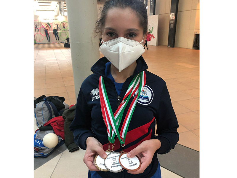 Per la categoria LB2 Allieve 2 Sophie Breccia ha conquistato ben tre medaglie: ha infatti ottenuto il titolo di vice campionessa assoluta ed ha poi conquistato la medaglia d’oro alla palla e quella di bronzo al nastro!