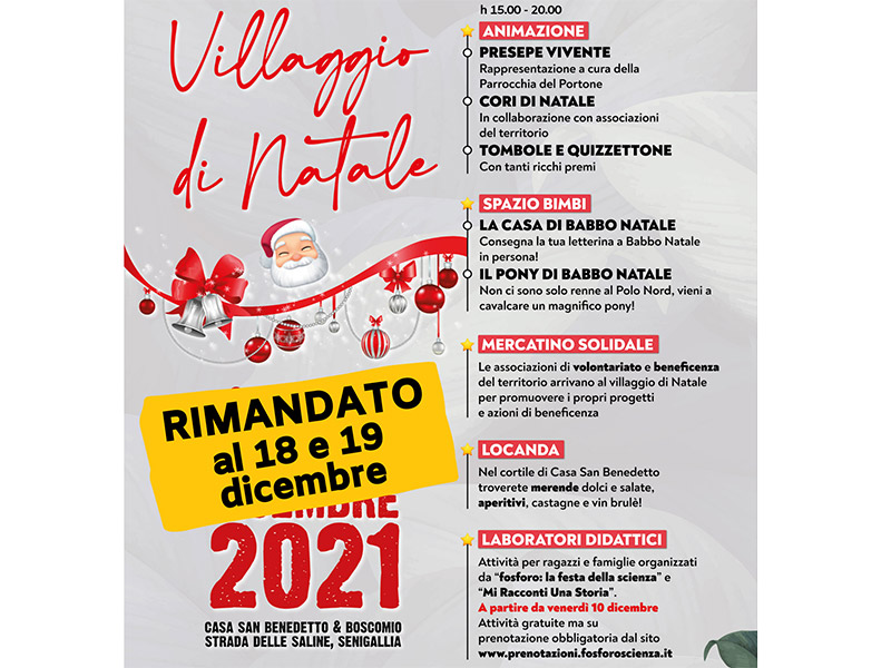 Il Villaggio di Natale di Casa San Benedetto di Senigallia confermato per 18 e 19 dicembre
